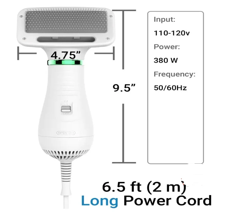 - Tres Ajustes de Temperatura: Controla el calor para un secado rápido y seguro, evitando quemaduras o molestias en la piel de tu mascota.